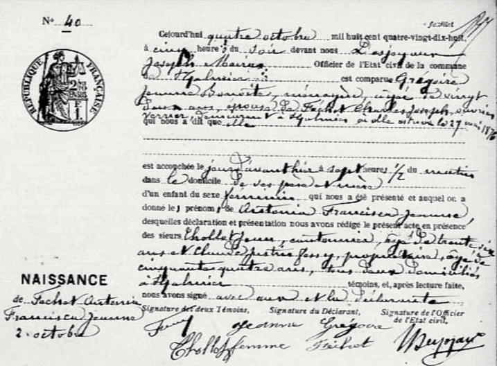 - Naissance d\’un enfant légitime déclarée par la mère de l\’enfant