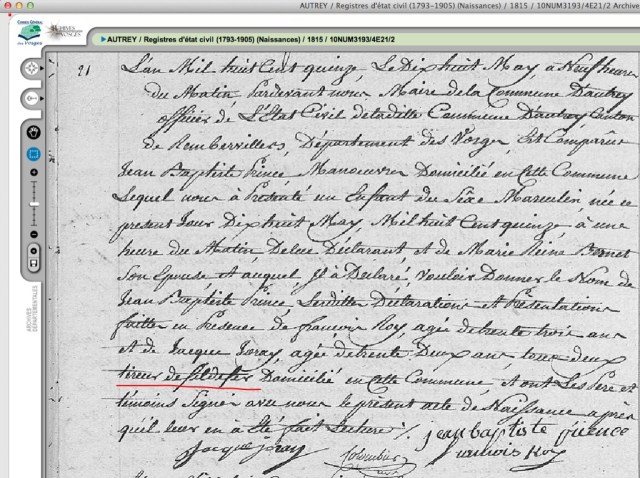 Le jeudi 18 mai 1815, à une heure du matin, le petit Prince naquit dans une petite commune des Vosges, à Autrey…