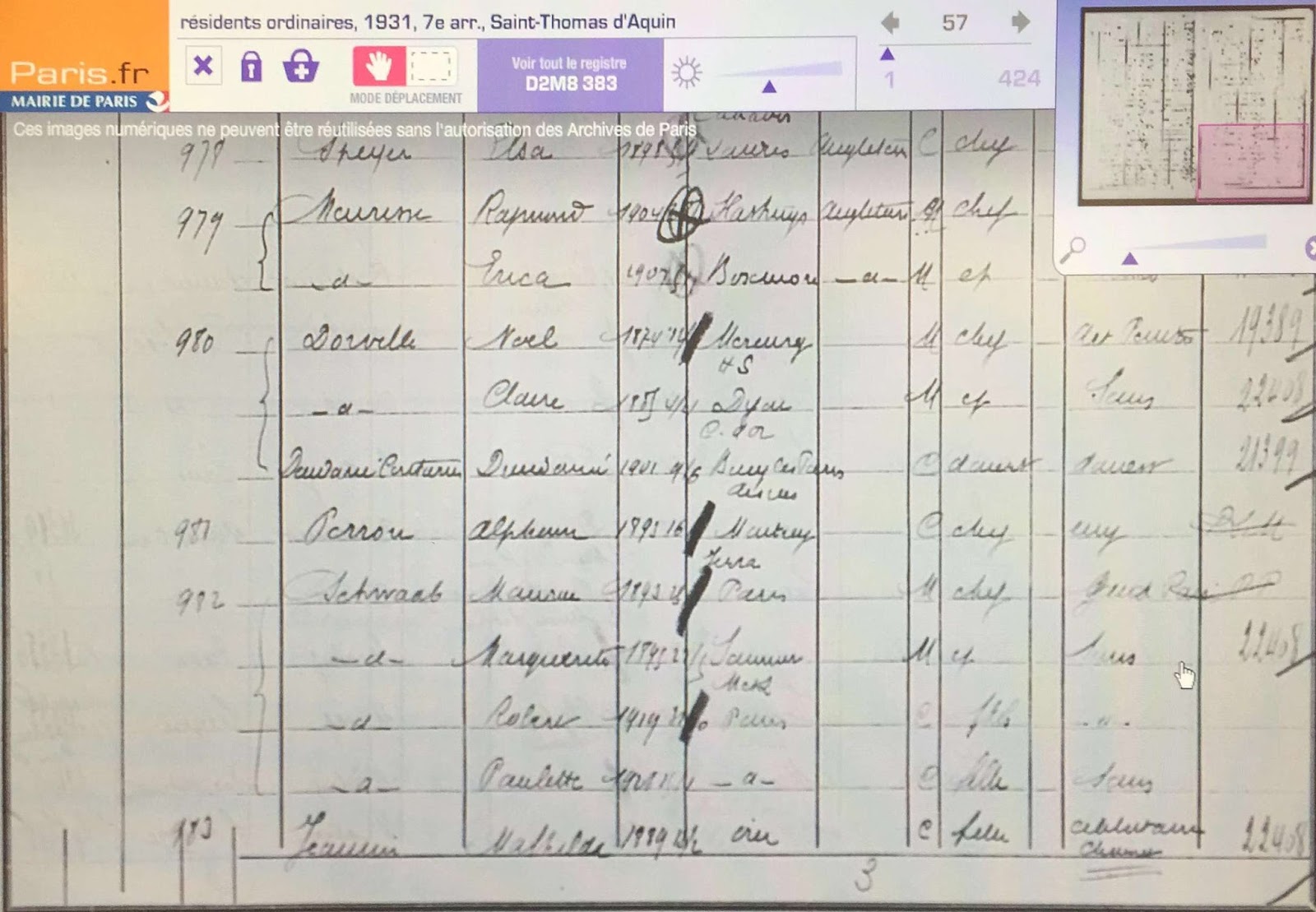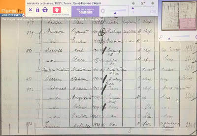 La consultation des recensements de 1926, tant au 12 rue Jacob qu\’au 94 rue du Bac, s\’est révélée infructueuse. Mais l\’année 1931 a \ »parlé\ ».
