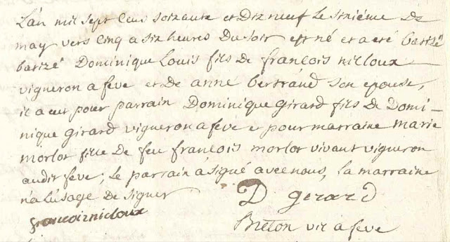 Dominique Louis NICLOUX est né à Fèves (Moselle) le jeudi 6 mai 1779. Il est le fils de François NICLOUX et d\’Anne BERTRAND.