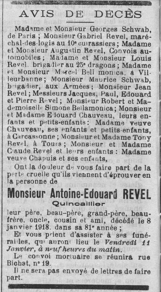 Avis de décès de Jean-Antoine-Edouard REVEL