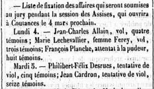 La raison de cette absence se trouve peut-être dans l’information parue dans Le Journal de l’arrondissement de Valognes, numéro du 1er mars 1850, trouvé via le site geneanet.org, où il est écrit :